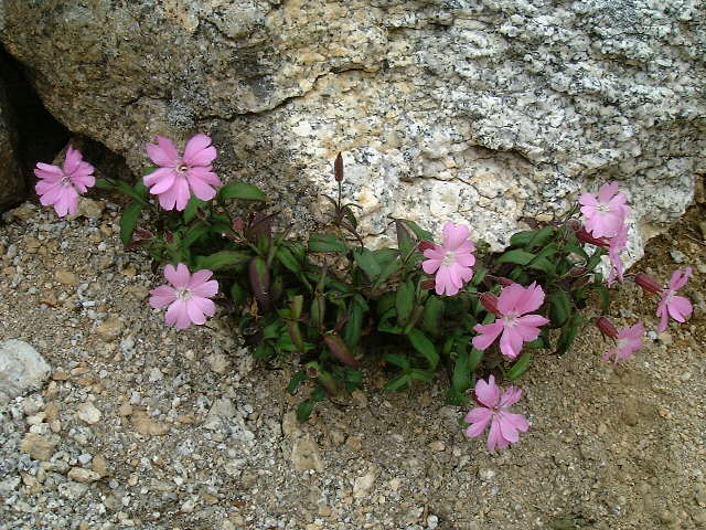 | タカネビランジ 岩の縁の砂地に咲くタカネビランジです。 | |