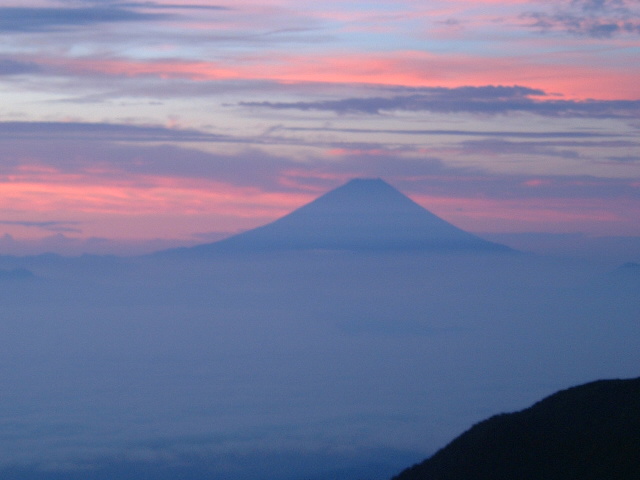 砂払岳(すなばらいだけ 2,730m)からの日の出前の富士山です。 | |