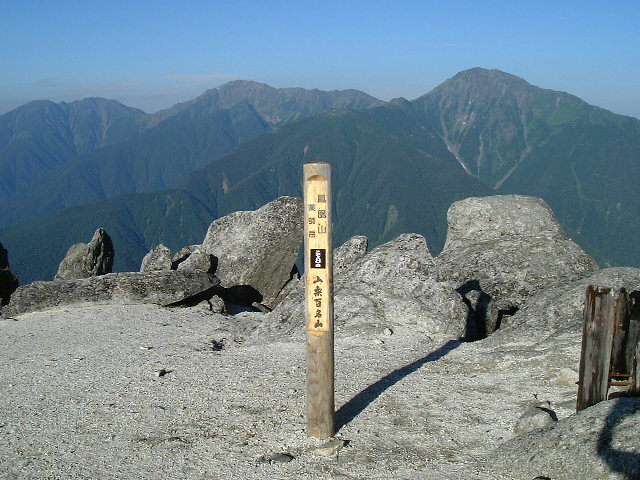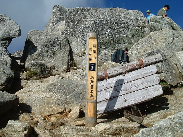 | 観音岳山頂 鳳凰三山(ほうおうさんざん)の最高峰,観音岳(かんのんだけ 2,840m:50th)の山頂です。 | |