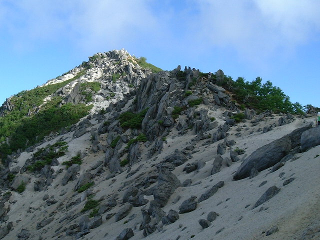 | 観音岳への登り 左の頂が観音岳(かんのんだけ 2,840m:50th)です。 | |