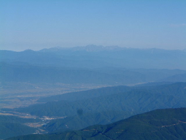北アルプスが肉眼でははっきりと見えました。 写真では見にくいですが,中央の一番高いところが穂高連峰(ほたかれんぽう 最高峰は奥穂高岳 おくほたかだけ 3,190m:3rd)です。 | |