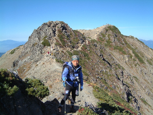 午前8時過ぎ,甲斐駒ヶ岳(かいこまがたけ 2,967m:24th)の山頂に到着です。 | |