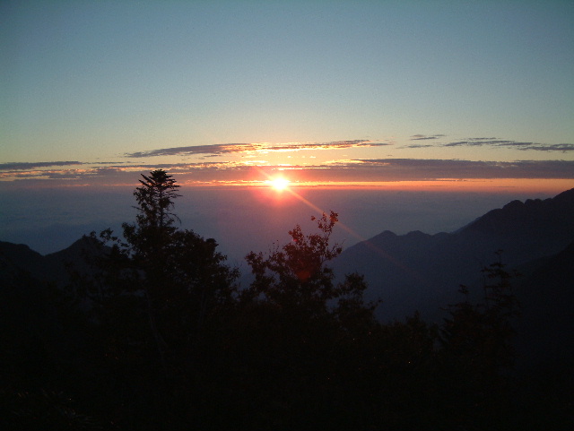 仙水峠から駒津峰(こまつみね 2,752m:81th)に登る途中で迎えた日の出です。 | |