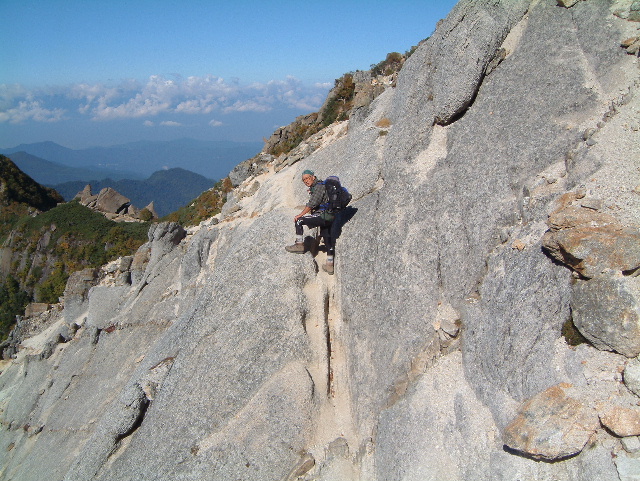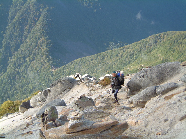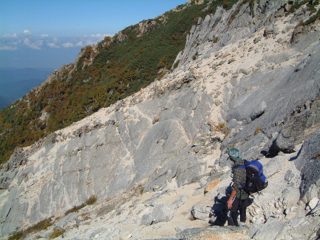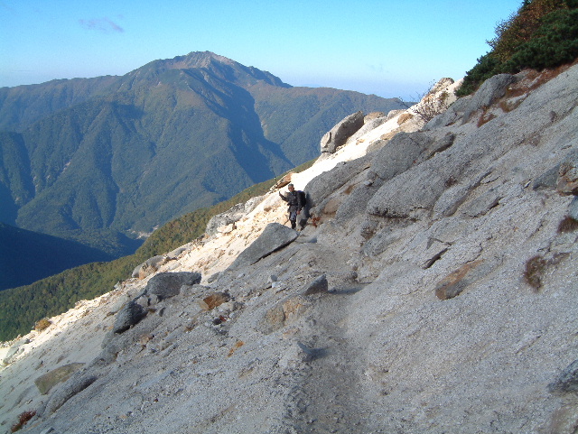 花崗岩の斜面を駒津峰へ下っていきます。 | |