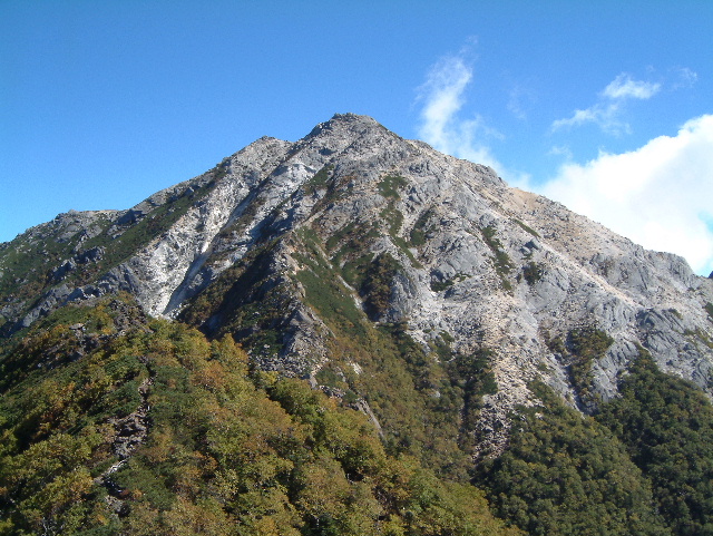 甲斐駒ヶ岳(かいこまがたけ2,967m:24th)です。 右に突き出たこぶは摩利支天(まりしてん)です。 | |