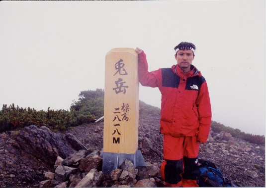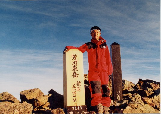 | 東岳の山頂にて 荒川三山の一峰,東岳の山頂です。 日本では槍ヶ岳(やりがたけ 3,180m)に次いで6番目,南アルプスでは北岳(きただけ 3,192m:2nd),間ノ岳(あいのだけ 3,189m,4th)の次に高い山です。 | |