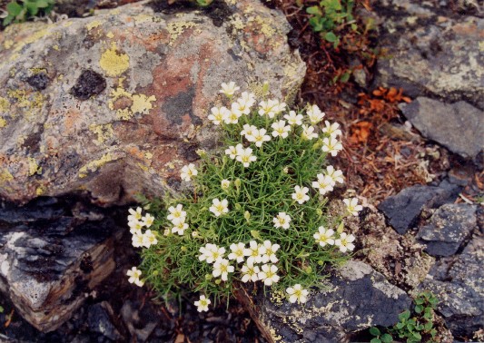 | タカネツメクサ 荒川岳山頂近くの岩場にひっそりと咲いていたタカネツメクサです。 | |