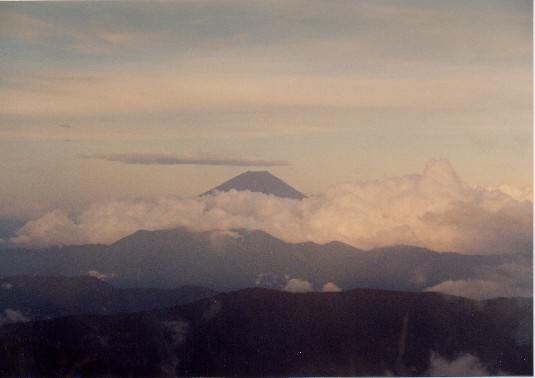 | 夕暮れの富士山 雲の上に顔を出した富士山です。 | |