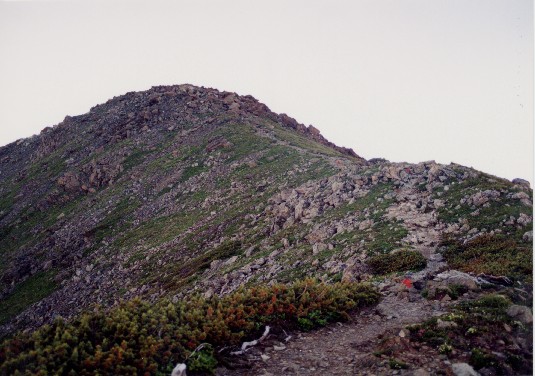 | 東岳の登り 険しい岩場を越え,多少緩やかになった道を山頂へ目指します。 | |