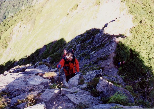 | 千枚岳への登り 千枚岳山頂直下の岩場の登りです。 | |